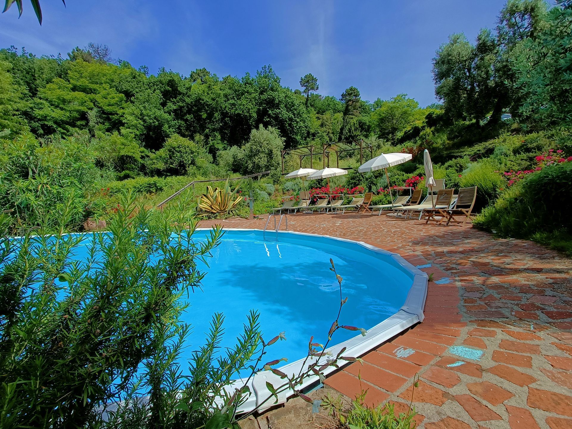 Um refúgio de paz aninhado nas colinas verdejantes da Toscana, ideal para se refrescar após um dia explorando as vilas toscanas ou simplesmente para tomar sol, relaxar numa espreguiçadeira e estar rodeado pelo silêncio da natureza.