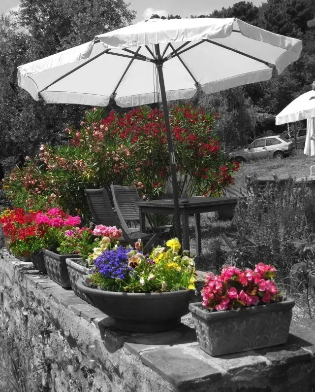 Deze boerderij is, zo is mij verteld, opgekocht als “ruïne” en vervolgens zoveel mogelijk hersteld in de originele authentieke staat. Verwacht daarom geen strakke hotelkamer van een of andere hotelketen maar ervaar een originele boerderij omgeving met keurige kamers/appartementen die alles bieden wat je nodig zou kunnen hebben, zelfs airconditioning en wifi. Daaraan toegevoegd een prachtige tuin met bbq, terrasjes in de tuin, grote pergola met daaronder een lange typische Italiaanse eettafel, bbq, kinder speelfaciliteiten, groentetuin, kippenhok, olijfbomen en een weelderige beplanting. En niet te vergeten een heerlijk zwembad op een geweldige plek in de tuin, om te genieten en alleen te gebruiken door de gasten.